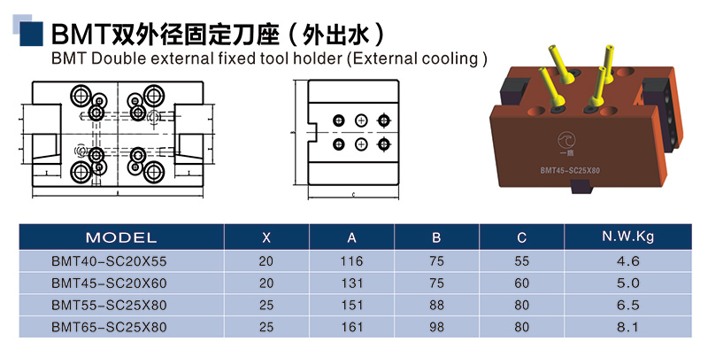 BMT雙外徑固定刀座(外出水)