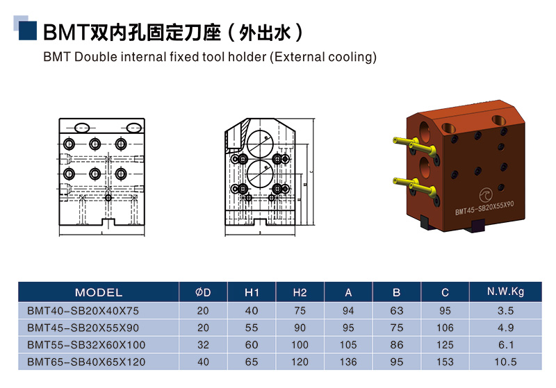 BMT雙內孔固定刀座(外出水)